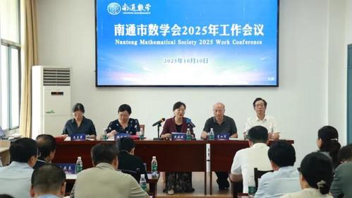 10月10日,南通市数学会2025年工作会议在我校召开。南通市数学会第十三届理事会理事长、我校副校长陈玉娟主持会议并讲话。南通市科学技术协会党组书记、主席成媛媛宣读成立南通市数学会临时党总支的批复,并与南通市民政局副局长肖四军共同为南通市数学会临时党总支揭牌。与会领导向第十二届理事会、监事会老同志颁发荣誉证书,向学会指导专家和南通市数学会第十三届理事会理事、监事会监事颁发聘书。