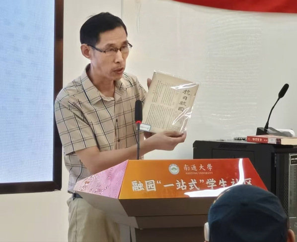 南通市能达报刊收藏馆馆长、老报刊红色文献收藏人王宴同志通过珍贵历史报刊和红色文献,系统阐释了抗战时期军民同心的奋斗历程。他指出,“无声”的史料,蕴藏“有声”的情意,提醒“江海儿女”永远记住历史“疤痕”,珍惜当下美好。