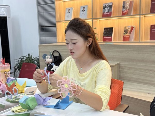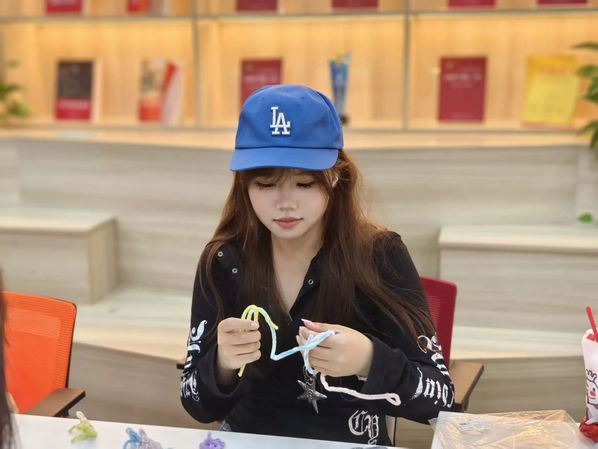 工作人员将彩色扭扭棒、剪刀、胶水等材料整齐摆放并提前演示了中秋元素的制作技巧。同学们围坐在一起,用色彩缤纷的扭扭棒,有的专注勾勒月亮,还有的发挥创意,缠绕出简单玉兔。在其过程中,大家不时交流技巧,互相帮忙调整造型,原本普通的扭扭棒,在一双双巧手下逐渐变成了充满中秋氛围的手工作品,造型解锁中秋新创意。
