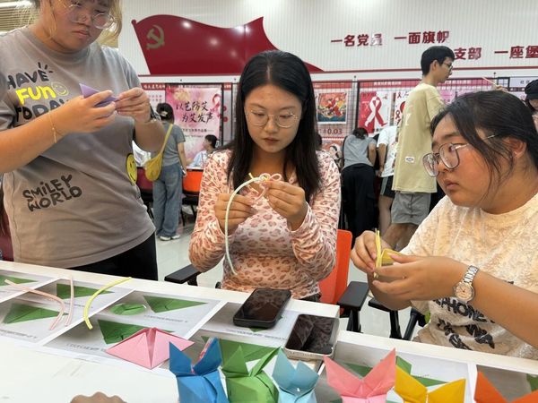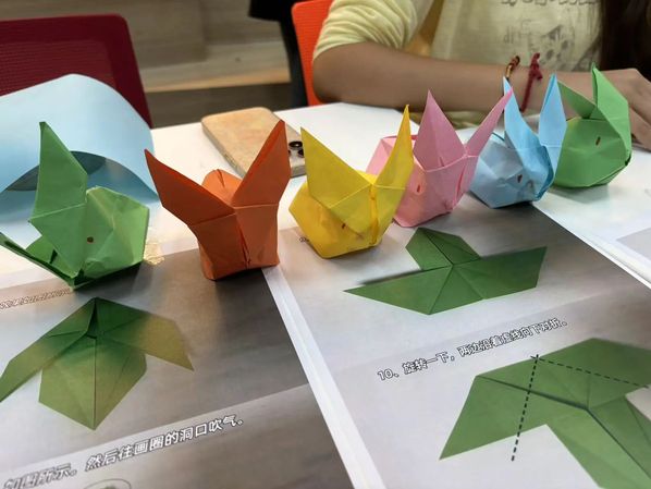 活动现场,志愿者提前准备好彩色卡纸、剪刀、教程图解,从基础的纸张对折、边角塑形,到细节的兔耳弧度调整、尾巴装饰,耐心为同学们拆解折纸步骤