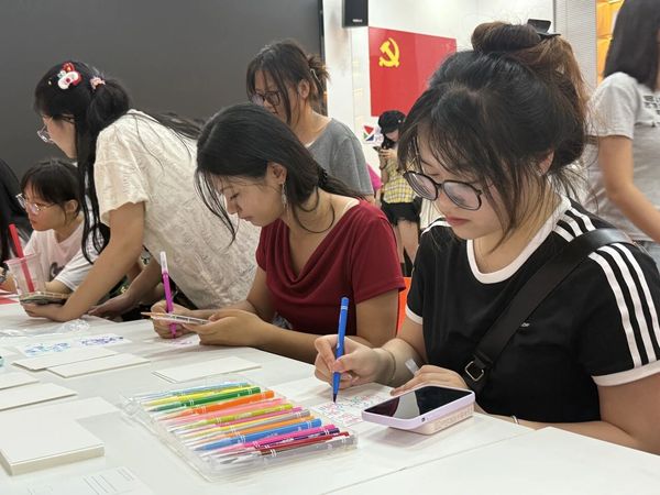 同学们围坐桌前,桌上彩笔、颜料、空白明信片整齐摆放。大家或低头构思,或提笔勾勒,有的以圆月、玉兔、桂花为元素,绘出中秋的经典意象;有的融入校园风景,将对学校的热爱与节日的喜悦结合;还有同学画出与家人团聚的温馨场景,满含真挚情感。很快,一张张空白的明信片,渐渐被中秋的月色、熟悉的校园和温暖的家填满,每一笔色彩里,都裹着对节日的期待和欢喜。