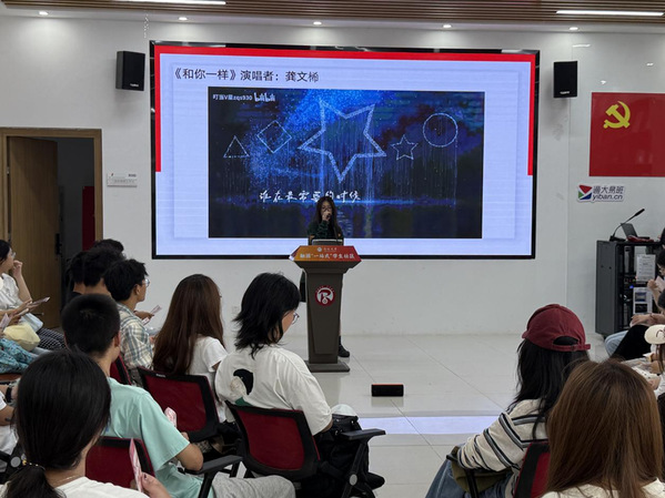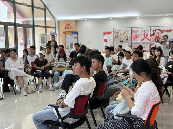 随后,沈欣的《想你时风起》以细腻的情感引发共鸣,《隐形的翅膀》传递出直面困境的勇气,暗合艾滋病患者对抗疾病、拥抱生活的精神;罗梓越的《虹之间》、臧从杰的《稻香》、位冰洁的《爱的回归线》轮番登场,或治愈、或轻快、或深情的旋律,让同学们在驻足聆听时,不知不觉卸下对“艾滋病”话题的刻板严肃,为后续的知识传递铺垫了温暖的基调。