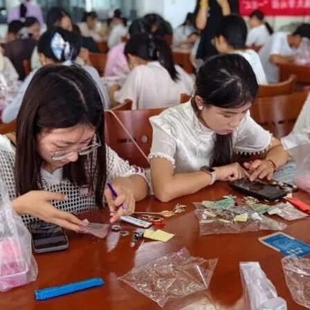 取一方古木裁作框,择几色绢丝摹山河——宋锦挂件制作藏着东方美学的细腻心机,当宋锦遇上中秋,是千年丝织技艺与传统佳节的浪漫碰撞!在“情聚沁园,月满中秋”活动现场,同学们化身非遗手作人,制作宋锦小挂件。今日这场宋锦展,不仅能视频观看匠人演示宋锦饰品的制作流程,更能近距离触摸那些凝固着宋代风雅的作品,每一寸肌理都在诉说千年未变的东方浪漫~