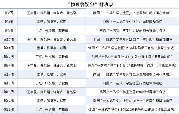 带上你的问题走进“一站式”学生社区“物理答疑室”我们为你答疑解惑,静候君至~