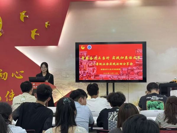 为充分展示学院2025年暑期社会实践活动的丰硕成果,进一步引导和激励广大青年学子将理论知识与社会实际相结合,在实践中增长才干、在奉献中锤炼品格,10月10日,物科院团委于秀园“一站式”学生社区举办“青春奋进正当时,实践归来话成长”暑期社会实践成果交流分享会。