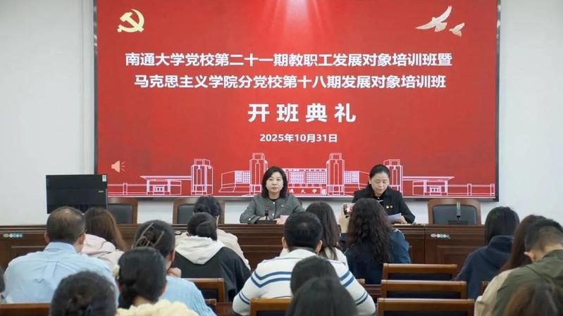 10月31日下午,南通大学党校第二十一期教职工发展对象培训班暨马克思主义学院分党校第十八期发展对象培训班开班。