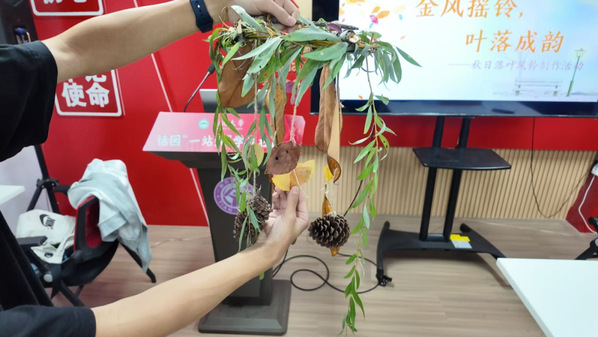同学们在纸上写下自己的创作理念,充分展现出个性。有人以秋日感受为灵感,充分展现出季节之变和生态之美;有人借风铃抒情,让一个个饱含秋日风情的落叶风铃成为记录美好回忆的专属符号。