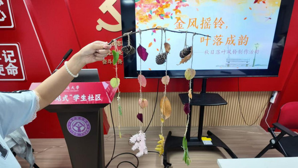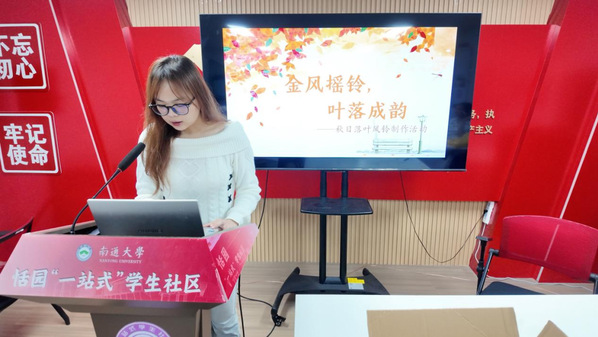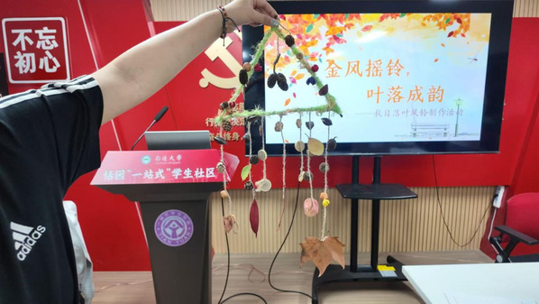 10月15日,南通大学文学院在恬园“一站式”学生社区举办了秋日落叶风铃制作活动。活动旨在让同学们感受秋日自然之美,体验手工创作的乐趣。