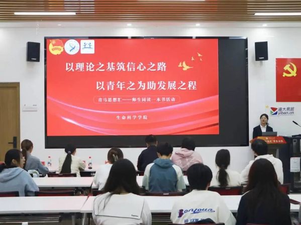 为深入学习贯彻习近平新时代中国特色社会主义思想,引导青年学生筑牢理想信念、提升思想觉悟,生命科学学院于10月27日下午在秀园“一站式”学生服务社区举办了“青马思想汇”师生同读一本书活动。活动特邀2022级辅导员王皓月、生物学硕2024级研究生徐晨嘉、华鑫涛、曹怡及2024级本科生陆欣宇出席,学院青马工程全体学员共40余人参加活动,院团委学生会组织部徐逸凡主持活动。