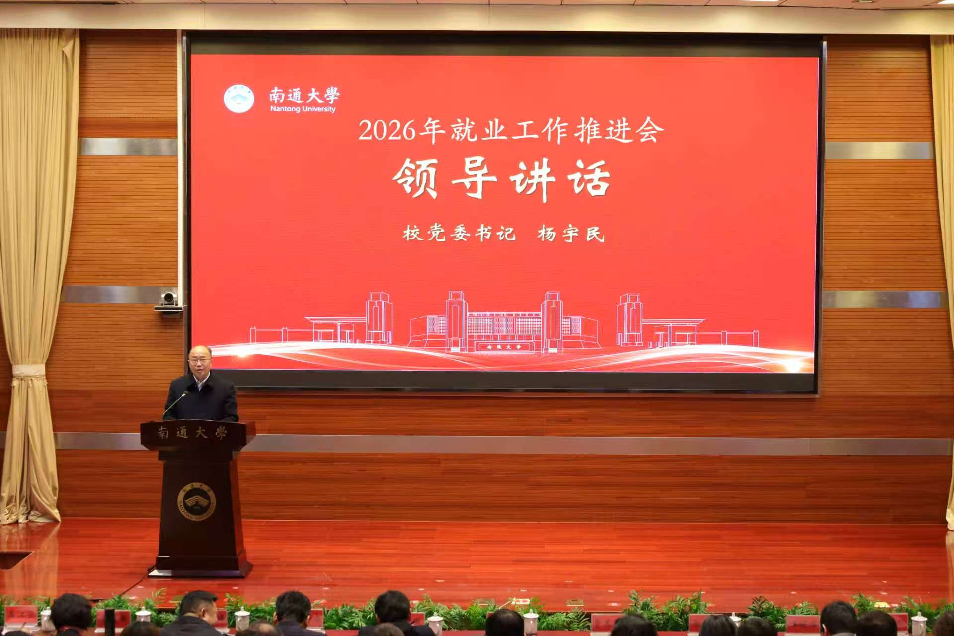 3月20日,我校召开2026年就业工作推进会。校党委书记杨宇民,校党委常委、副校长吉明明,校党委常委、组织部部长吴如高出席会议。南通市人力资源和社会保障局党组成员、副局长曹星晖应邀参会。